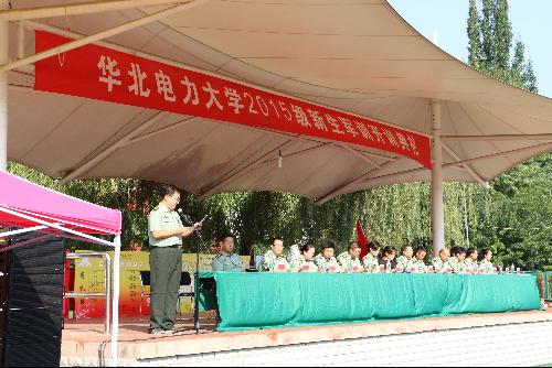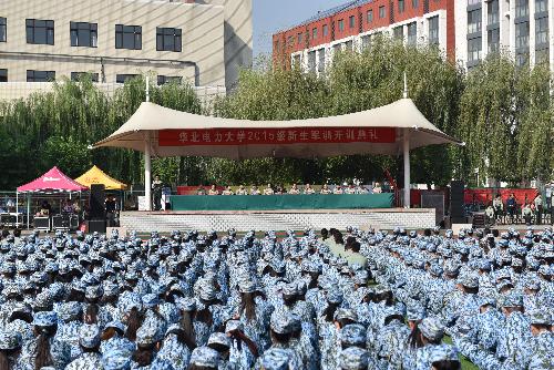 9月14日,华北电力大学隆重举行2015级新生军训开训典礼。军训团团长兼政委张新娟,军训团副政委卜春梅,军训团副政委王文才,军训处处长王强书教官及各院系副书记等领导出席了此次典礼。军训团副团长张兵仿主持典礼。