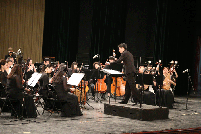 整场音乐会以合奏《龙腾虎跃》结尾,此曲是一首以打击乐为主的民乐合奏,乐曲情绪炽热,民族风格浓厚,采用鼓乐合奏的表演方式。中段多种鼓的音色与节奏交相辉映,乐曲最后部分主题旋律与鼓声交相奏鸣,震撼人心。
