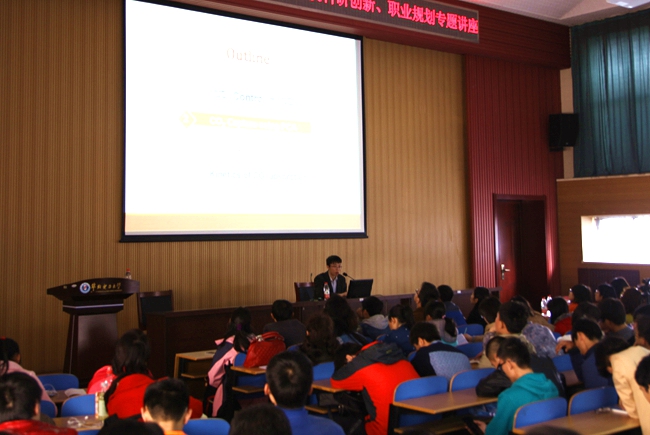 汪黎东结合自身的求学、科研、工作经历,与在座的师生深入探讨了大学生应如何正确规划自己的职业生涯,并对学院全体学生提出了更高的要求。他强调大学生应严于律己,杜绝享乐主义,明确人生目标,积极参加创新实践活动,使自身得到不断的充实和提高。汪黎东讲授与互动相结合的方式使会场气氛十分融洽,并激发了学生们极大的学习兴趣,细致入微的讲解让在座的学生们受益匪浅,也为一些学习困顿、思想迷茫的学生点亮了一盏明灯。