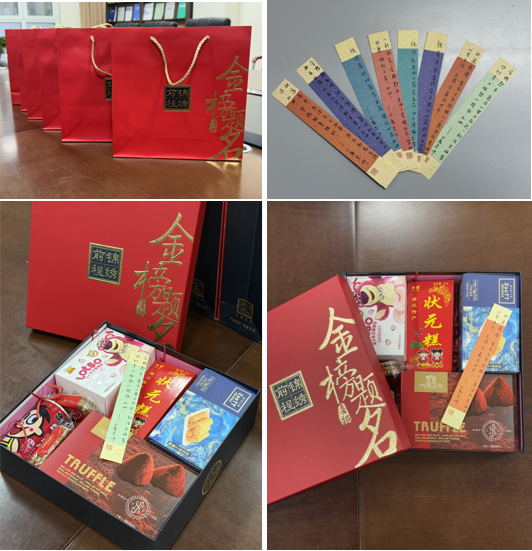 结合考研学生的实际需求,英语系定制了寓意深长的考研加油礼盒,含巧克力、牛奶、状元糕、饼干和辅导员专属加油贺卡等,为大家补给能量,驱散寒意。礼包承载着英语系对每一位考生最殷切的祝福,旺仔牛奶祝愿学子旺运当头、所愿皆成;巧克力寓意答卷时妙笔生花,纵享丝滑;状元糕象征“糕”分通关,喜“研”连连,每一份礼物都承载着英语系对考研学子深切的关爱与美好的期许。