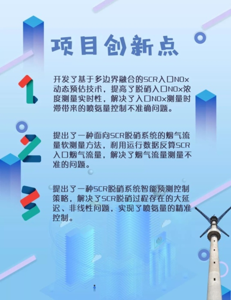 本项目由大唐环境产业集团公司承担,并委托我系杰德控制系统工程研究中心共同研发。项目以火电机组SCR脱硝系统为研究对象,基于多边界信息融合、智能预测控制、机器学习等算法,研发了入口NOx动态预估、烟气流量软测量、喷氨量精准控制等关键技术,构建了智慧脱硝控制系统,并完成了工程示范。示范工程运行结果表明,SCR脱硝系统可实现长期稳定自动控制,脱硝出口NOx浓度波动幅度在±5mg/m3范围内,氨耗量可降低10%~20%,有效降低了氨逃逸,解决了空预器堵塞等工程实际问题,具有显著的经济和环境效益。