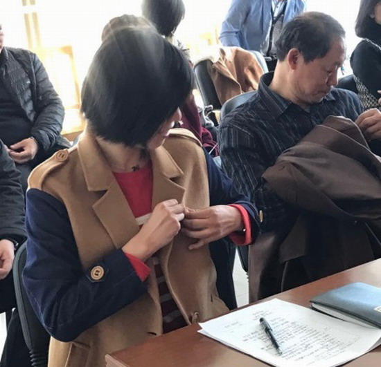 接着,党员教师集体佩戴党员标识。王聚芹指出,这个仪式非常重要,它意味着“我是一名光荣的共产党员”的一种提醒,意味着“我遵照共产党员的标准严格要求自己”的一种承诺,意味着“我将按照一名优秀的共产党员开展工作”的一种行动表达,她要求,马克思主义学院党员教师工作期间必须佩戴党员标识。