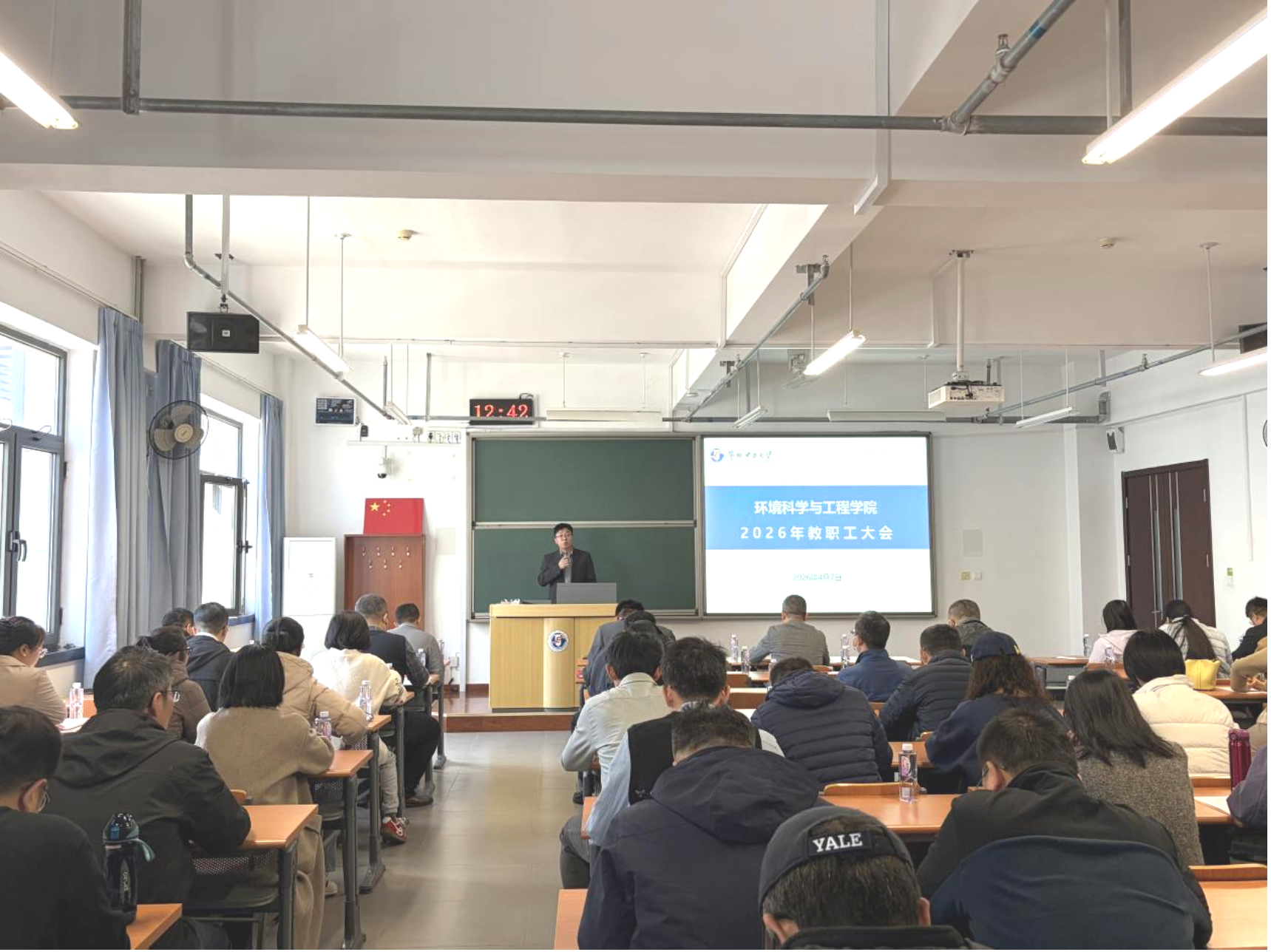 4月7日中午,环境科学与工程学院2026年教职工大会召开。学院班子成员及全体教职工参加会议,会议由党委副书记、分工会主席武昌杰主持。