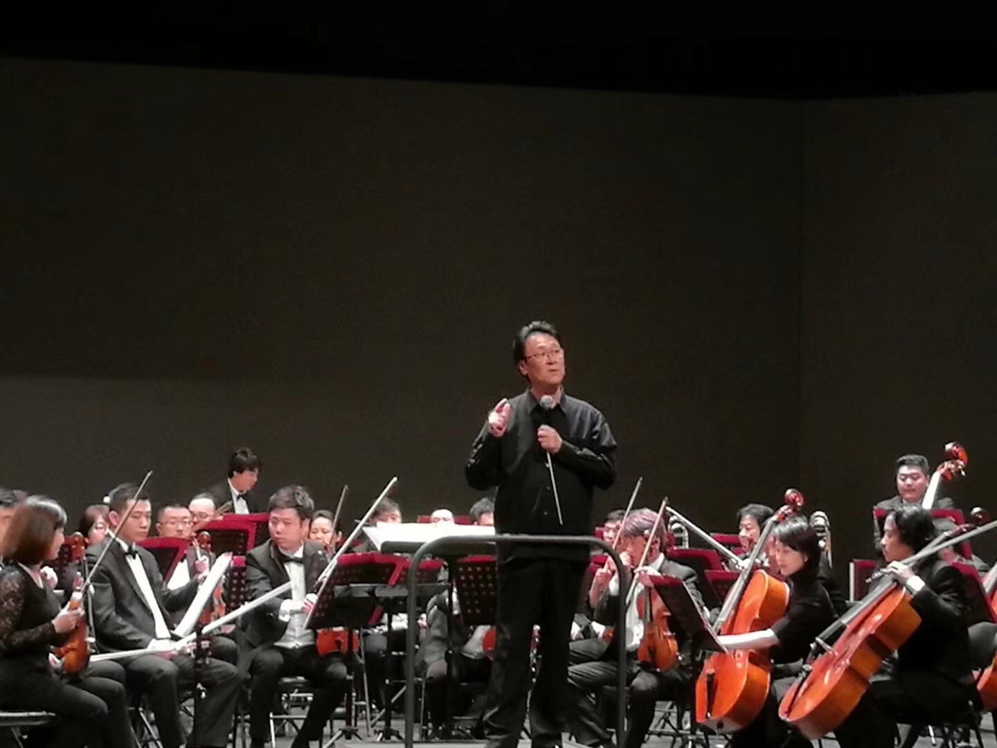 十首曲目之后,观众掌声雷动、热情高涨,指挥家谭利华三次返场,为大家献上经典乐曲《闲聊波尔卡》和山寨人民庆贺伟大胜利的《北京喜讯到边寨》,音乐会在《康康舞曲》欢快的乐声中落下帷幕。