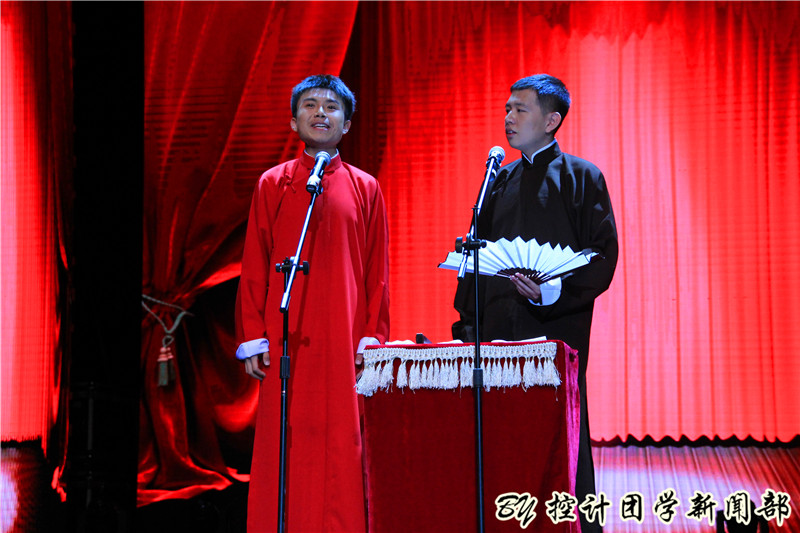 接下来是由赵雄飞、许彬出演的相声《我有意见》。能言善辩的两人以华电校园广播新闻主持与助理点评的新颖形式,串联起了大学生活中的点滴片段。这些熟悉相似的经历,使得在场同学感同身受,欢呼声此起彼伏,大赞不已。