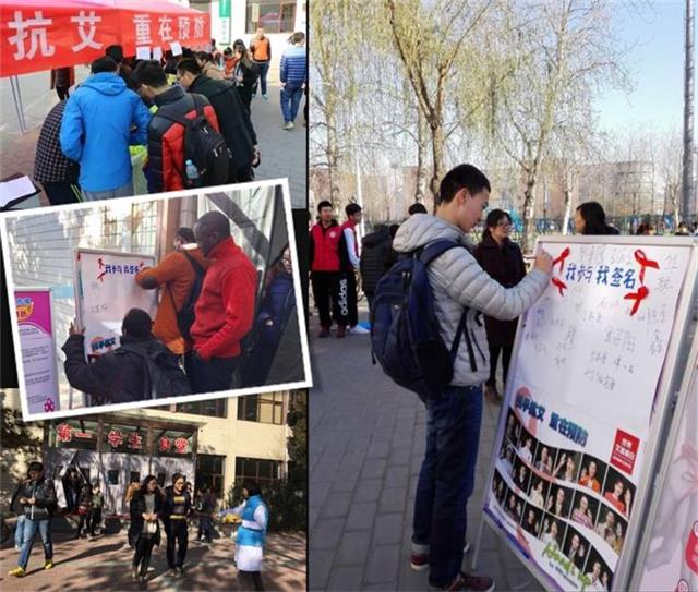 12月1日中午校医院在大学三个食堂的六个门厅处布置了防艾展板,吸引了众多师生驻足观看。校领导、职能部门的负责人和老师们在“我参与 我签名”展板上签名,包括外国留学生在内的众多学生纷纷签名支持,场面感人。