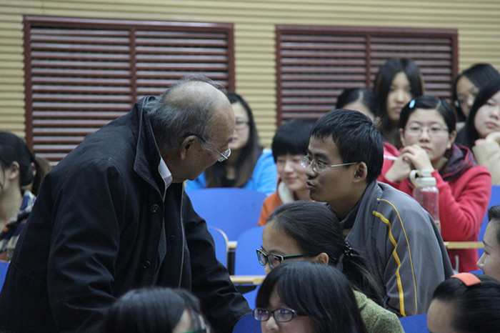 最后,江枫老师在现场为同学们解答了诸多学习方面的问题,并慈祥朴实地鼓励在场的同学多广泛读书,多精读,能坚持读书,受到同学们的热烈欢迎,讲座也在掌声中圆满结束。