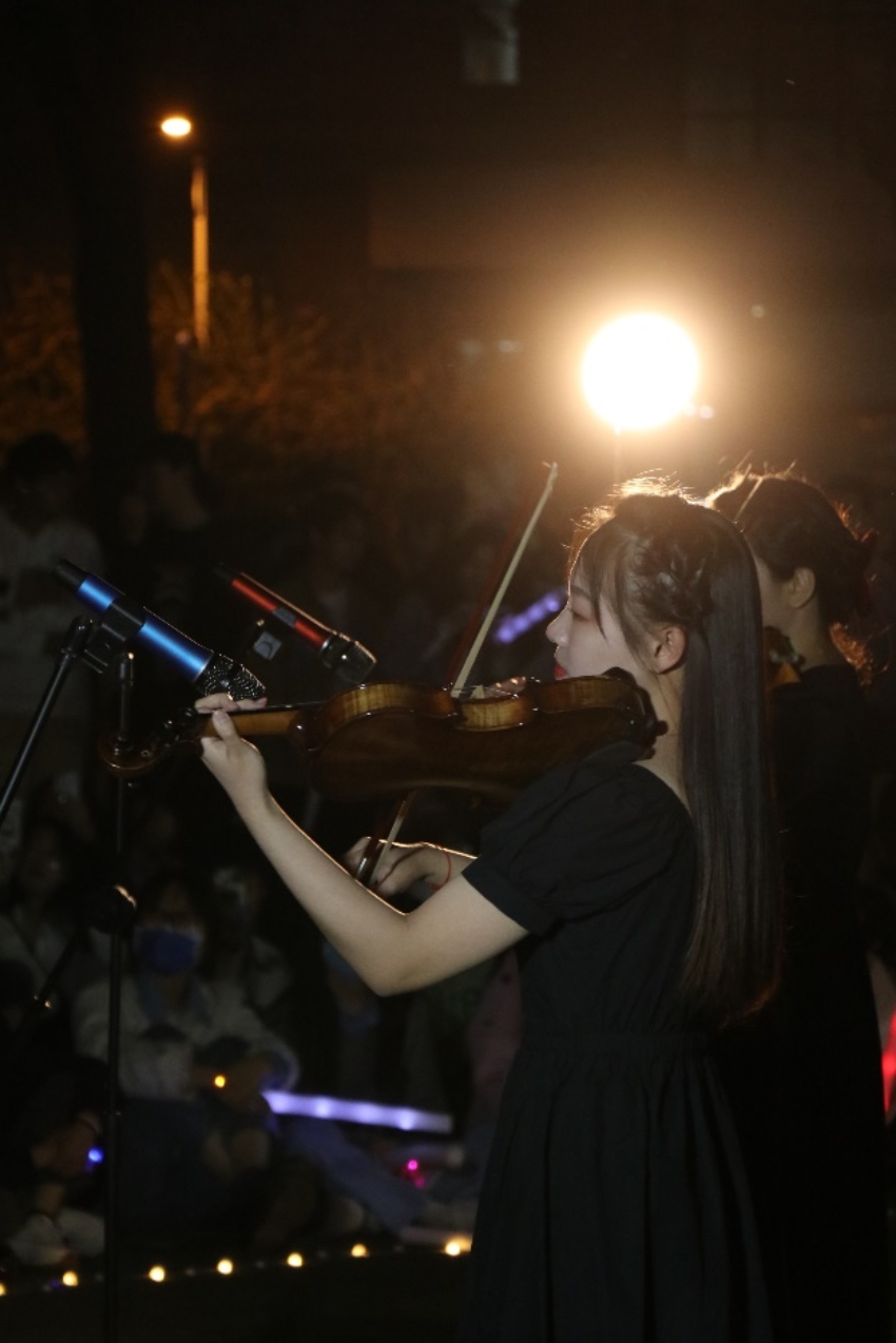 伴随着神秘嘉宾邓艺欣、林诗雨的中场献唱,音乐节气氛被推向顶峰。此次音乐节,节目精彩纷呈,除歌唱表演外还穿插舞蹈、小提琴表演。每一个节目都展现着大家的心声,表达着华电学子积极向上的生活态度和热情无限的青春活力。音乐节活动在“薄荷糖”乐队演唱《无人的海边、七里香》的歌声中落下帷幕。