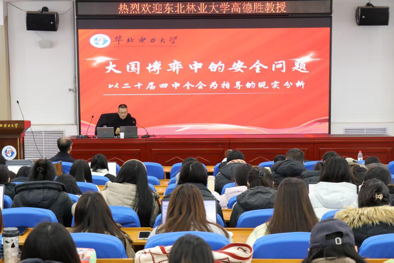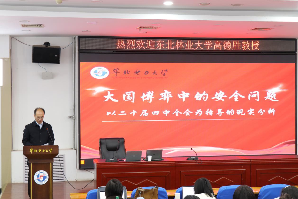 本网保定讯:近日,东北林业大学马克思主义学院二级教授、博士生导师高德胜教授应马克思主义学院(保定)邀请,为我校师生作了题为《大国博弈中的安全问题——以党的二十届四中全会为指导的现实分析》的学术报告。本次报告会由马克思主义学院(保定)和科学技术处(保定)联合主办,我校师生100余人参加。报告会由学院副院长王建红主持。