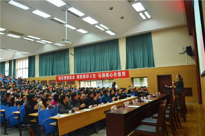 首先,汪黎东宣读了“点赞青春,圆梦华电”系列教育活动方案。第一阶段:广泛宣传、营造氛围,通过举行2015年环境学院优秀学子报告会,表彰先进、树立榜样,引导学生勤学修德,传承并发扬学院优良学风,营造创先争优的良好氛围,为系列活动的顺利开展奠定基础。第二阶段:全面展开、落到实处,充分运用党日、团日活动切实引导学生践行社会主义核心价值观;举办“我的奋斗,我的目标”主题班会,邀请校友、名师进班级与学生面对面答疑解惑;举办创新创业系列讲座,培养学生创新创业实践能力,丰富学生第二课堂;开展“奔跑吧!青春”三走活动,组织晨读、晚读活动,培育优良学风;举行“我的大学我规划”十佳征文评选活动,引导学生科学合理规划大学生活、谋划人生发展。第三阶段:总结经验、交流讨论,对活动进行及时总结、宣传,运用新媒体将活动成果上传至省级、国家级媒体平台,进一步提高活动影响力。