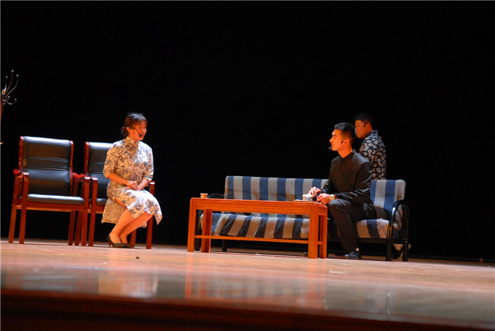 本网保定讯:5月12日晚,由艺教中心主办、大学生艺术团话剧团承办的大学生艺术节系列活动之六——丁酉林独幕剧专场在校礼堂举办。本次话剧表演的指导老师宋一辰、吴乐为观看了此次演出。