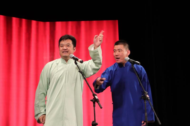 最后,张天雷和李宾带来了相声《欢声笑语》,同样以贴近生活的表演,引得在场同学们阵阵捧腹。