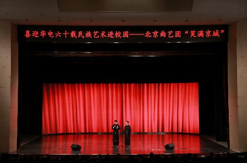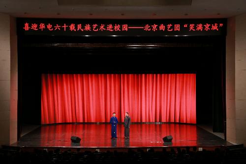 5月29日晚,“喜迎华电六十载,民族艺术进校园”——北京曲艺团《笑满京城》相声专场在礼堂举办。