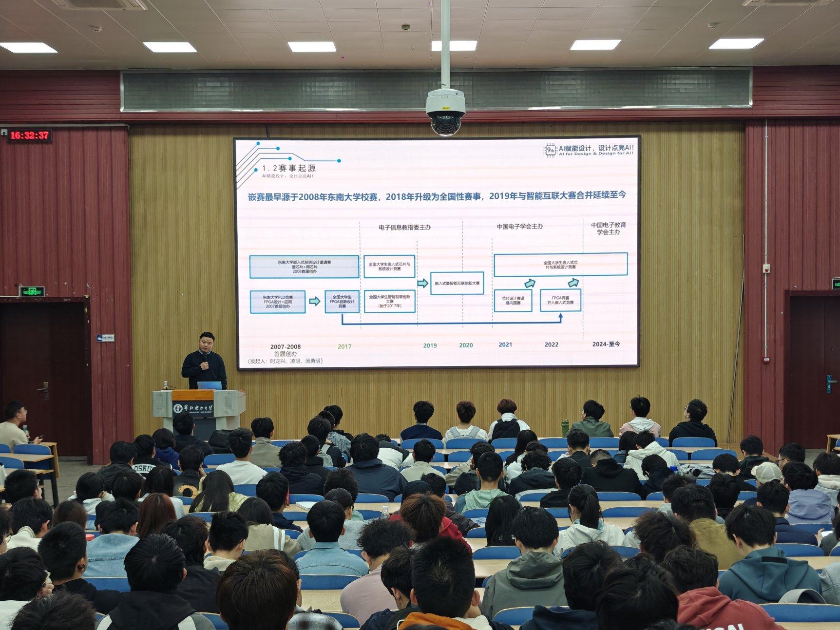 宣讲会上,杨威围绕大赛整体情况进行了全面介绍。他结合赛事的发展历程,系统讲解了竞赛的组织模式、参赛流程、基本要求以及各阶段的重点任务,帮助同学们对比赛有了更加直观、清晰的认识。通过对赛事规则和培养目标的解读,同学们进一步理解了学科竞赛在专业学习、能力提升和成长发展中的重要作用。重点围绕瑞芯微赛题进行了深入分享,结合赛题方向、技术特点和实践要求,详细介绍了相关赛题的主要内容与备赛重点,帮助同学们更好地把握竞赛方向和学习路径。结合往届优秀案例,分享了部分获奖作品的设计思路、实现路径和项目亮点,从选题构思、方案设计、系统实现到成果展示等多个环节进行了细致讲解。通过这些具体案例,同学们对“什么样的作品更具竞争力”和“如何做好一项竞赛作品”有了更深入的理解。