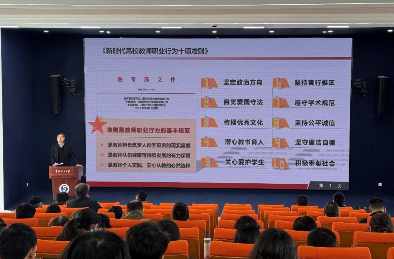 学院党委书记张德安传达了学校全面从严治党工作会议精神,通报了在责任落实、违反中央八项规定精神、师德师风、科研经费管理等方面查处的典型案例。他强调,学院全体教职工要引以为鉴,树立“清零思维”和底线思维,严守师德师风规范,坚决杜绝不当言论、师生不当关系、要求学生从事无关事务、科研失信等行为。他指出,要从政治高度推动学院发展,结合树立和践行正确政绩观学习教育、教育教学思想大讨论,直面专业变革与人才培养挑战,落实立德树人根本任务。他还就消防安全、防盗防骗、杜绝酒驾以及学生心理与就业等安全工作作出重点提醒,要求全院上下守土有责、共同维护学院安全稳定与事业发展。