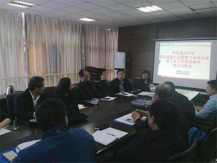 本网保定讯:4月12日下午,保定校区马克思主义学院召开全体教师会,传达并学习我校第六届第六次教职工代表大会暨工会工作会议精神。会议由党总支书记张德安主持。