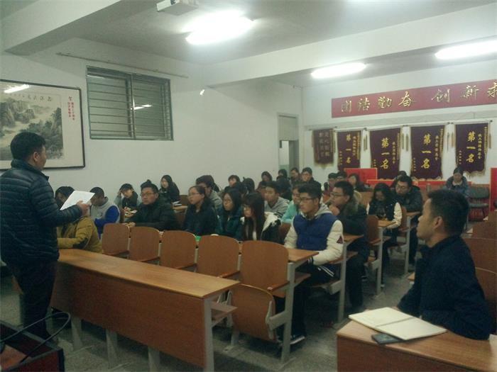 本网保定讯:11月19日下午,根据学风督察活动的整体安排,经济管理系召开2015年学风督察促进大会。出席会议的有经管系党委副书记赵怀璧、团委书记赵吉鹏、辅导员刘东旭、张冰华,到场的还有各班班主任和主要学生干部。