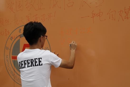 9月26日,校团委组织开展“青春喜迎十九大,百团大战展风采”活动,通过社团文化展示以及在“迎接华电第二次党代会和十九大”展板留言等方式,引领同学们迎接华北电力大学第二次党代会的到来,鼓励大家以奋发向上的精神状态和更加优异成绩喜迎党的十九大胜利召开。