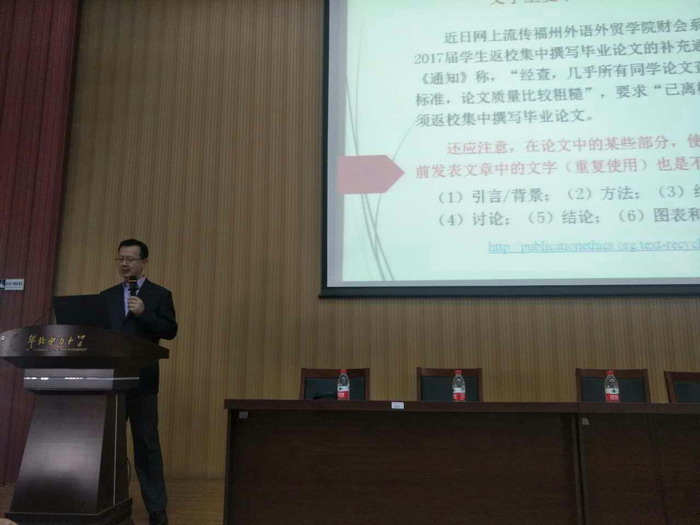 本网保定讯:5月23日上午10时,孙平博士应邀为我校师生作了题为“学术诚信与论文规范”的主题讲座。讲座在教六一阶举办,旨在普及论文写作的格式,强调论文写作规范,并且培养学生的学术诚信意识。