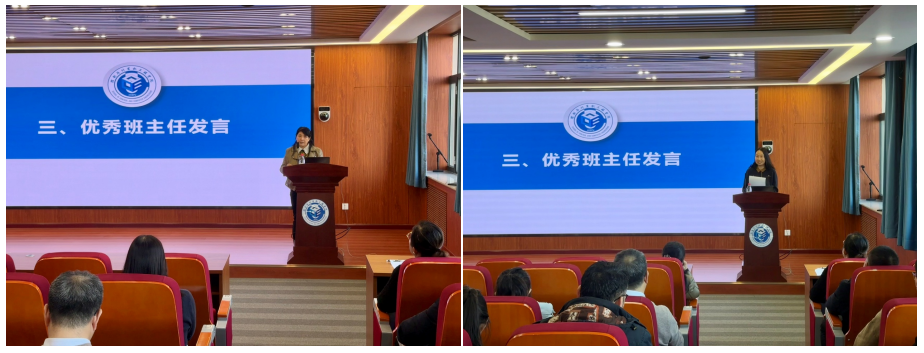 优秀班主任代表袁桂丽、王素琴分享了育人经验。袁桂丽老师作为深耕班主任工作二十余年的资深教师,分享了分年级育人策略:大一注重帮助学生适应大学生活;大二、大三持续营造优良学风,开展学业帮扶;大四针对不同发展方向的学生提供精准指导。王素琴老师结合班主任经历,分析了当代学生在沟通方式、班级活动参与等方面的新变化,提出要建立信任基础、理解学生表达语境、提升心理解读能力。