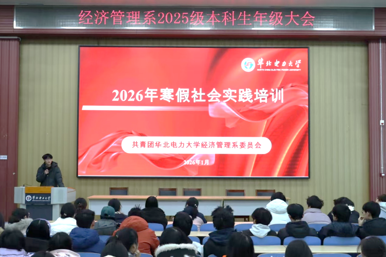 本网保定讯:为全面总结大一上学期学业情况、严明期末及寒假安全纪律、部署寒假社会实践工作,2026年1月13日,经济管理系于教六一阶开展2025级本科生年级大会。会议由辅导员胡雅元主持,2025级全体本科生参会。