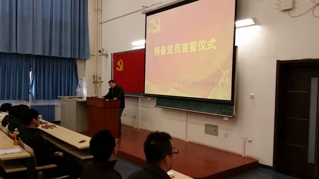 1月13日,控制与计算机工程学院党委举行了预备党员入党宣誓仪式。党委副书记谢桂庆、各年级党支部书记及正式党员代表和全部预备党员参加了此次活动。会议由学院总支组织委员薛明磊老师主持。