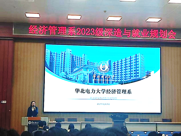 本网保定讯:为帮助2023级本科生明确大学目标,合理规划考研安排,12月5日,经济管理系在教六一阶召开2023级本科生年级大会。邀请校内考研机构和经济管理系研究生教学秘书滕俊婷担任主讲,2023级全体本科生参加,会议由辅导员魏壮主持。