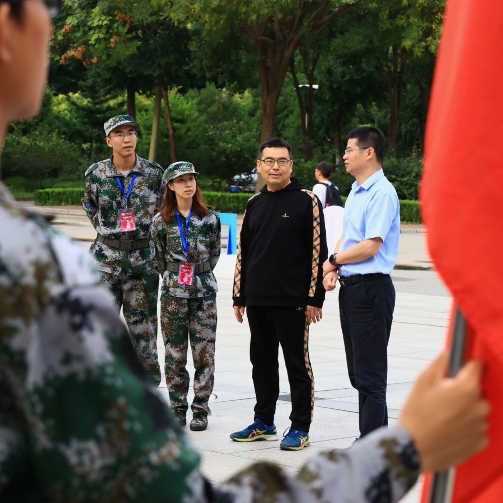 李彦斌代表学院表达了对新生们的亲切慰问与高度赞许,并对参训学生的良好精神风貌给予肯定。李彦斌表示,2021级新生恰逢党的百年华诞之际走入大学校园,是无比幸运的一代。军训是磨炼意志品质、融入集体很好的形式,希望同学们直面军训的挑战,抓住“军训第一课”的机会努力升自身身体素质,强化国防意识,将军训所感所得带到今后的学习生活中去。李院长还对承训教官们这段时间的辛勤付出表示衷心的感谢和诚挚的敬意,充分肯定了军训成果,并与教官们进行了亲切交流。