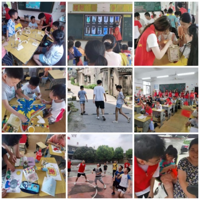 在志愿服务活动中,志愿服务团队精心谋划、巧妙设计,通过合理配置不同的课程和活动,使孩子们在“德、智、体、美、劳”五个方面都获得了锻炼和提高。在思维拓展课上,志愿者用张桂梅校长的箴言——“我生来就是高山,而非溪流”激励孩子们树立远大志向、创造不凡事业;在实验课上,孩子们被新颖的机械模型和神奇的化学实验深深地吸引着,在兴趣和求知欲的驱动下主动了解背后的科学知识;在音乐课上,志愿者带领孩子们唱响《我和我的祖国》,在歌声中分享当地的红色人物和红色故事,进行了一场接地气的爱国主义教育;在绘画课上,孩子们在志愿者的指导下学习儿童简笔画技巧,用画笔勾勒出了童真童趣;在体育课上,精彩激烈的篮球比赛和动感有趣的手势舞《名字叫中国》极大地调动了活动的气氛,让孩子们在运动中增强体魄,在对抗中学会合作;在活动课上,志愿者在教授传统花灯和风筝制作的同时不失时机为孩子们普及八一建军节的知识,孩子们用写有“八一”二字的作品表达着对革命先烈的深切缅怀。此外,志愿服务团队主动面向家长进行专题调研,将家长反馈的问题作为在后续活动中优化改进的重要参考;考虑到学生人身安全,活动期间主动护送孩子回家,为孩子和家长提供最好的活动体验。