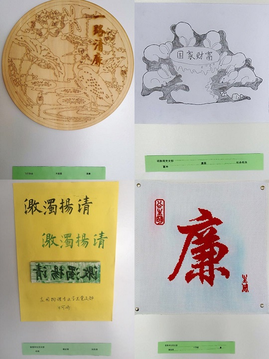 此次党风廉政作品展共展出以“党风廉政”为主题、包含字画摄影等多种表现形式的作品20多件。作品把党风廉政与传统艺术或现代科技相结合,引导广大党员干部进一步提高廉洁自律意识。木版画“清莲自爱,造福一方”“莲之爱”、橡皮章“激浊扬清”“两袖清风”、PCB“廉政” 立意新颖,构思巧妙;书法字画以及摄影作品寓意深刻,富有哲理;十字绣“爱莲说”“廉”融思想性、艺术性于一体,发人深省。