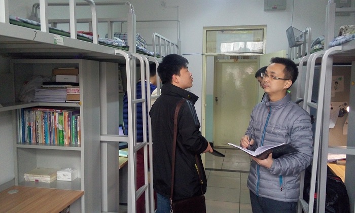 学生处相关人员及各院系14名学工干部参加了此次检查活动,检查前学生处副处长商雷对此次检查工作进行了部署,并提出了相关要求。随后,按照院系及宿舍楼分布情况,各学工干部分为六个检查组,分别对全部学生宿舍进行检查。