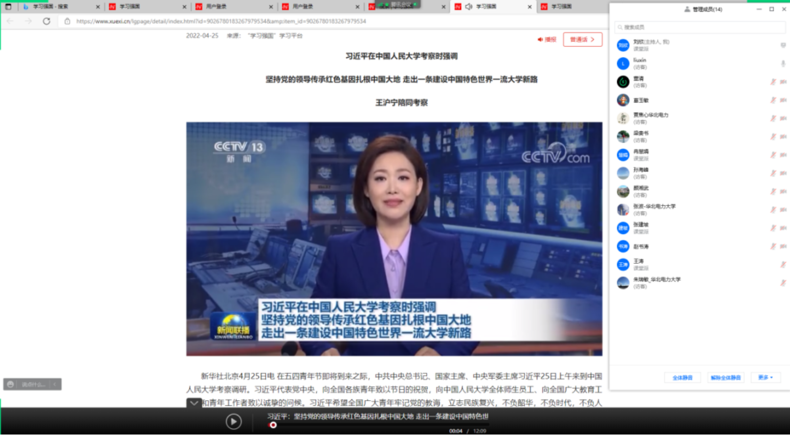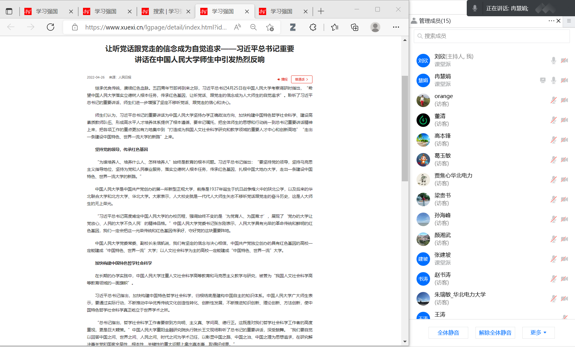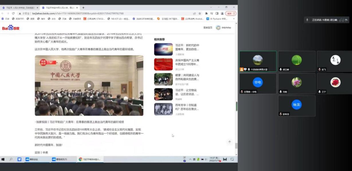 本网保定讯:4月25日上午,习近平总书记来到中国人民大学考察调研,并发表重要讲话。为进一步深入领会总书记的讲话精神,近期,电力工程系各教工党支部分别召开了线上专题学习会议,认真聆听,深入交流,畅谈体会。