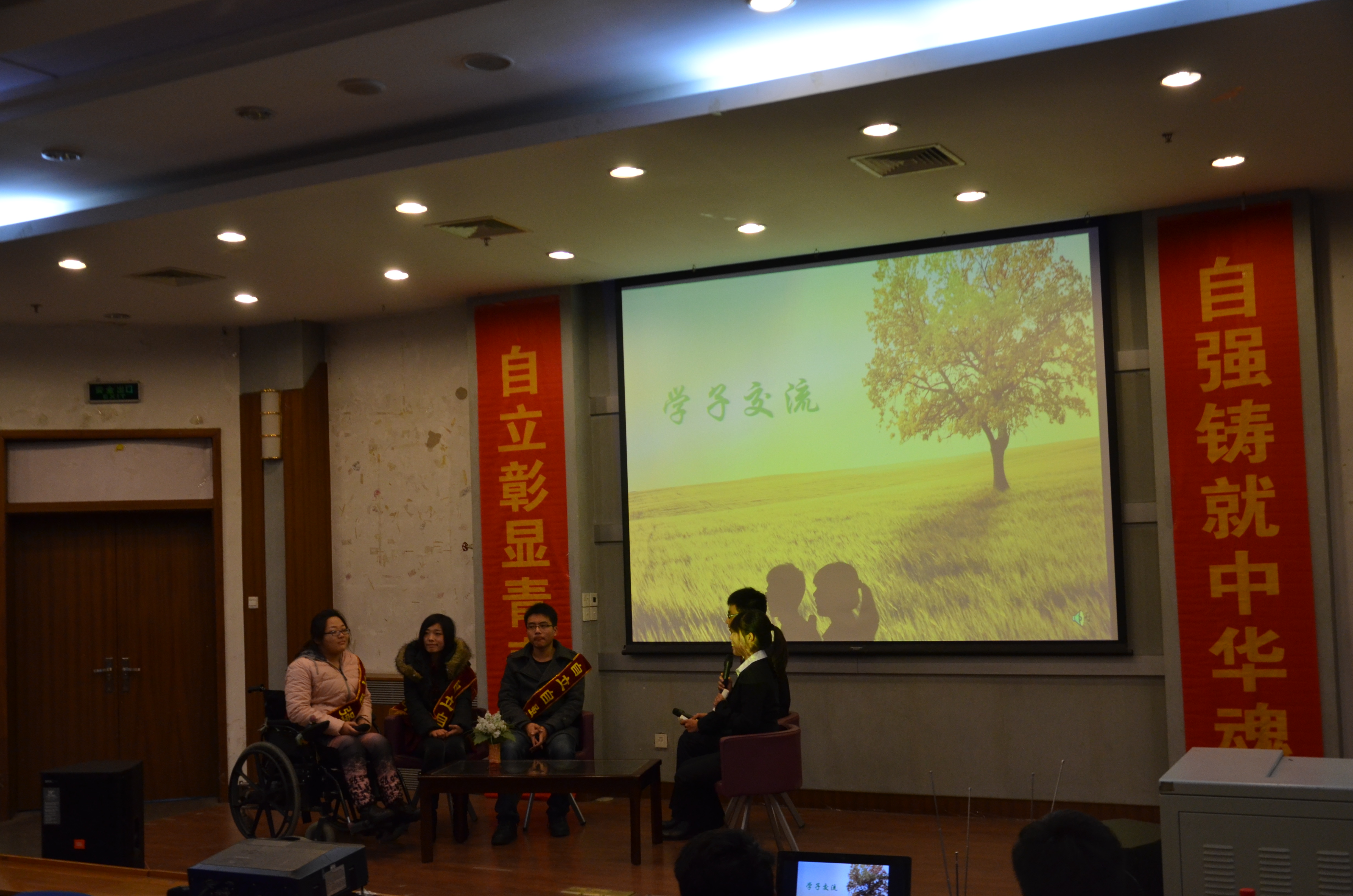 最后上场的是经管系会计专业的史怡杰同学。儿时的一场大病,使她的双腿无法再站起来, 尽管要与轮椅相依为伴,但她没有因此消沉不振,而是在不幸中努力涅槃重生。考入华电后,她勤奋学习,对自己要求严格,上课从来不迟到,并积极参加班级社团活动以丰富大学生活。生命以痛吻我,我则报之以歌,不管是VCR中还是报告会现场,史怡杰同学脸上始带着终灿烂美丽的笑容,其乐观昂扬的精神风貌和发自肺腑的演讲让在场观众无不为之动容。