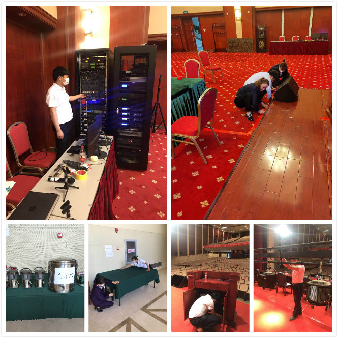 后勤提前做好水、电的供应保障:对中水及二次供水设备进行检查并消毒,并对中央空调及新风机组进行消毒;对礼堂及会议室的座椅与照明系统逐一检查,确保会议期间正常运行。