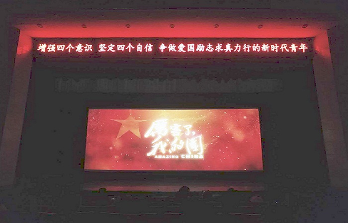 为深入学习贯彻习近平新时代中国特色社会主义思想和党的十九大精神,引导广大青年学生不断增强“四个意识”,坚定“四个自信”,争做爱国、励志、求真、力行的新时代青年,5月12日晚,学工部组织本科生在主楼礼堂观看大型纪录电影《厉害了,我的国》。