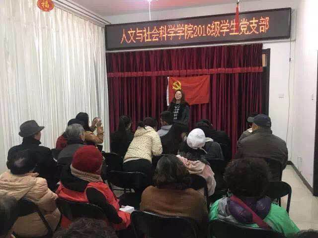 人文与社会科学学院“敬老孝老”宣讲团,于11月24日前往风雅园社区开展了“关注十九大,普法维权”主题宣讲会,旨在帮助社区老人更好地认识和理解十九大报告的主要内容,培养法律观念和维权意识。