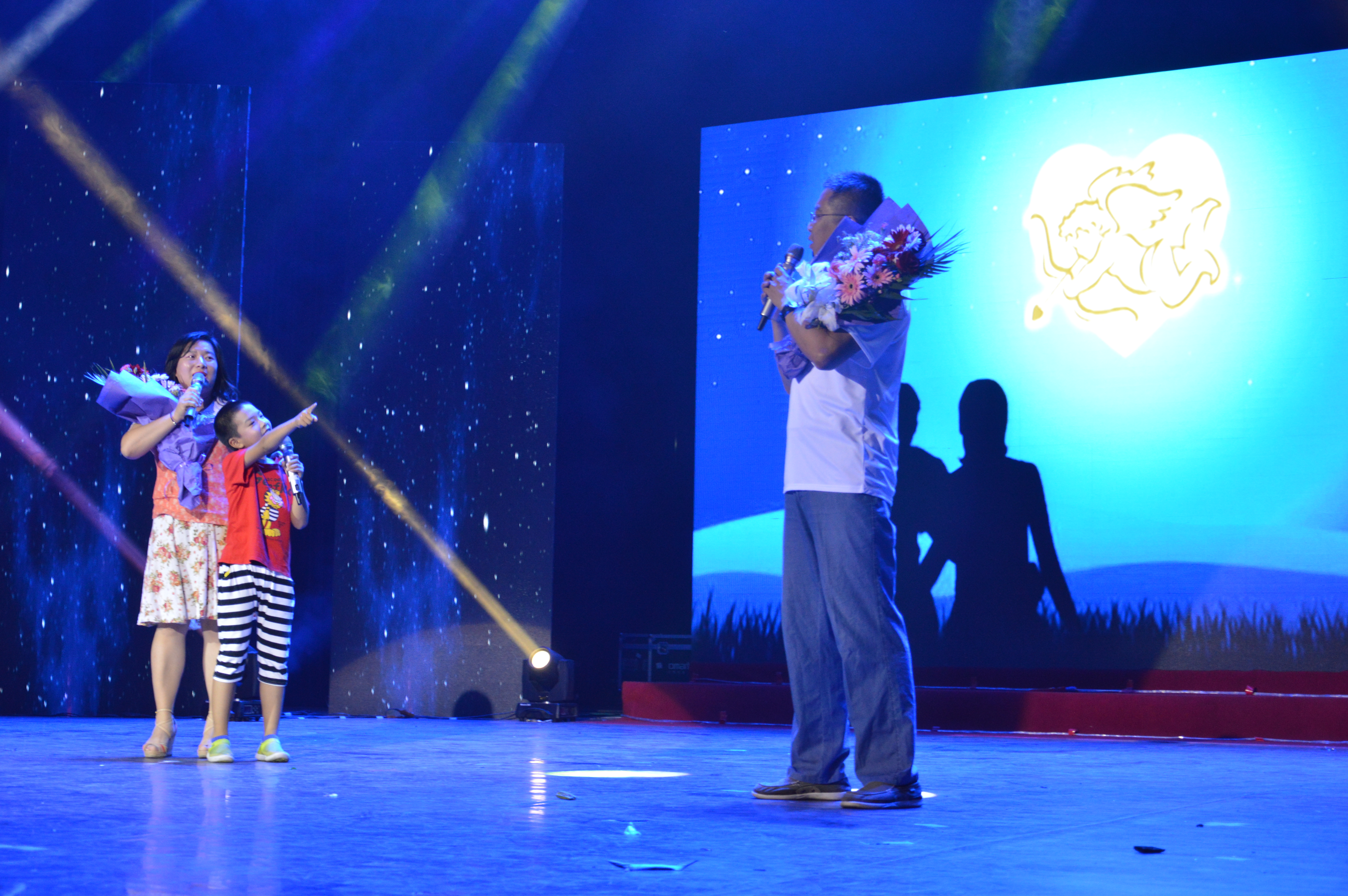师生爱情联唱中同学们与自己的老师同台演唱的温馨画面,感染了在场的观众们。宋金鹏老师一家人登台演唱的《我们好像在哪儿见过》更是将晚会推向了高潮。
