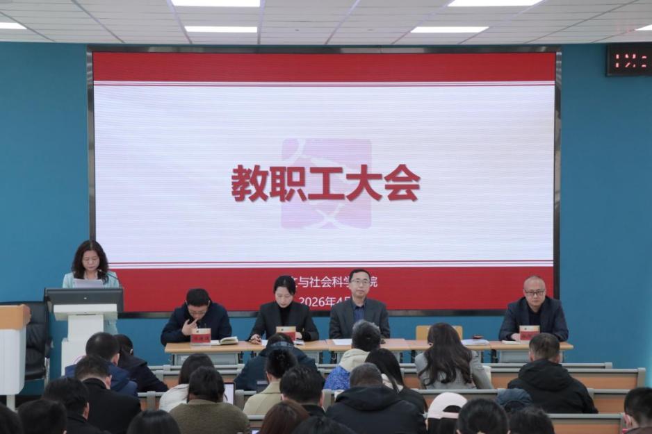 4月7日,人文与社会科学学院召开2026年教职工代表大会,学院党委书记吴万凯,院长梁平,副院长赵旭光、陈建国以及全体教职工参加。学院党委副书记崔灿主持会议。