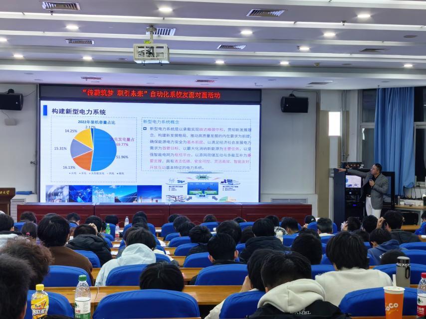 本网保定讯:为培养学生的生涯规划意识,充分发挥优秀校友的榜样示范作用,11月5日下午,自动化系举办“对话青春 职引未来”校友面对面活动。活动邀请2009级校友、中能联建(广东)能源发展有限公司及广州海克森能源有限公司总裁范金骥做报告。自动化系2024级本科生参加活动。