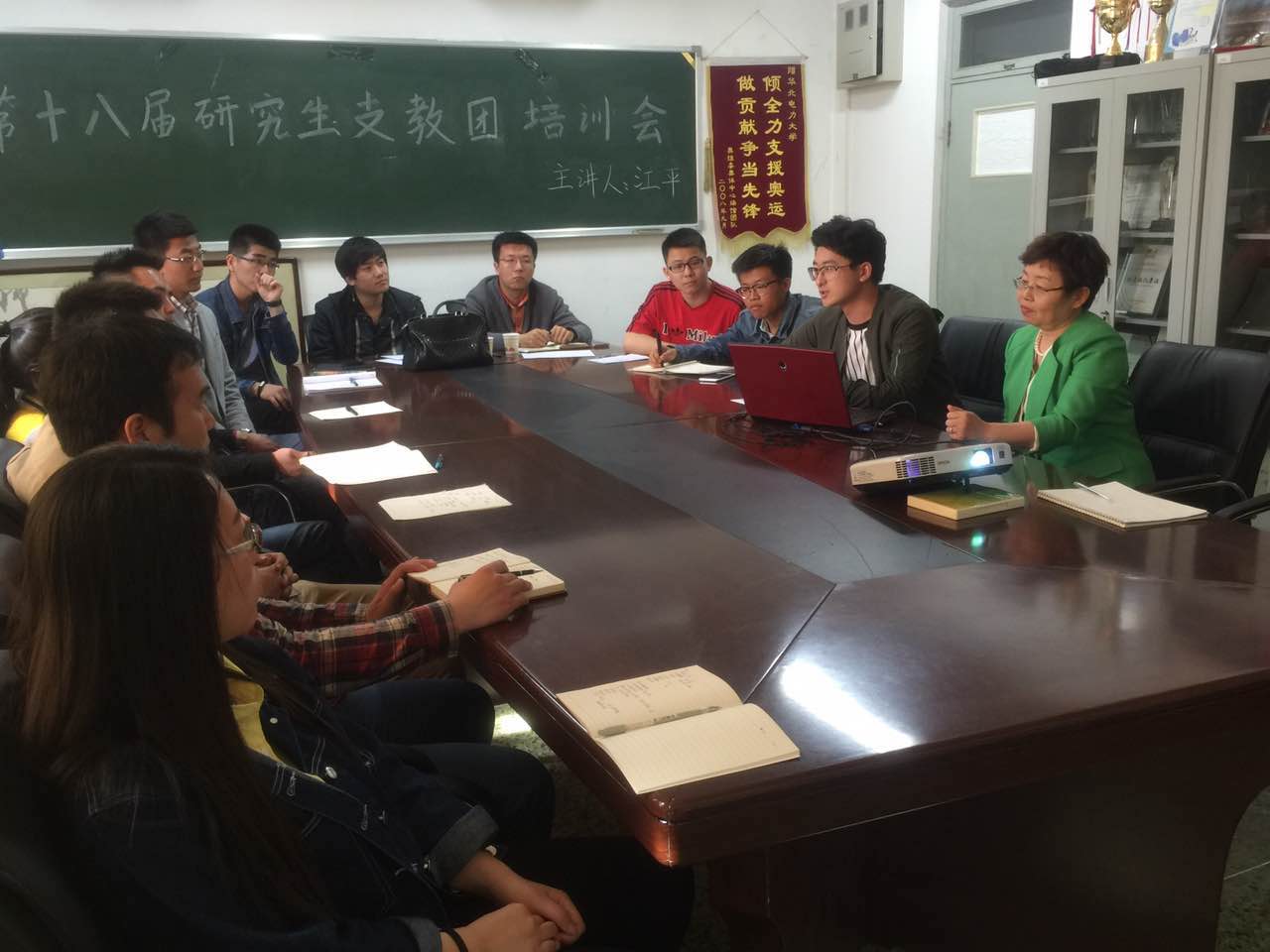 为了提升我校研究生支教团工作水平,提高研究生支教团成员的服务理念和服务技能,让支教团成员迅速适应支教环境,华北电力大学北京、保定两地团委于4月16日对全体支教团成员进行集中培训。此次培训特邀请支教团服务地区乌鲁木齐市达坂城区教育局副局长江平老师来校讲解,以及往届优秀支教团成员面对面进行交流。