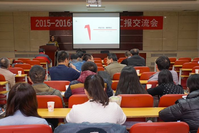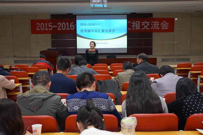 本网保定讯:11月15日下午,保定校区在学工楼举办了2015-2016学年辅导员汇报交流会暨学工干部“磐石计划”活动。全体学工干部参加了汇报会。汇报交流会由就业指导中心主任、学生处副处长李瑾主持。