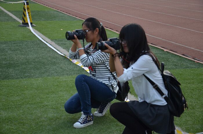 背着相机,穿梭在人群中,奔走在各个赛场。端起相机,记录运动员的矫健,记录拉拉队的热烈;按下快门,定格领奖台的喜悦,定格欢呼人群的雀跃。照片,载录了绿茵场上的角角落落,载录了如火如荼的竞技,载录了青春飞扬的拼搏。然而,照片外的他们,忙碌着,默默做好工作,心满意足于一张张照片,丝毫不介意自己满身疲累。他们是美好的采集者,捕捉一切有意义的画面;他们是美好的记录者,让闪闪发光的瞬间成为永恒。专注于照片的美丽,而将自己的美丽点缀在运动场上。