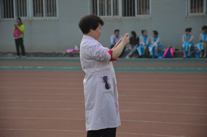 空闲之余,护士阿姨也用手机记录着比赛的精彩瞬间。