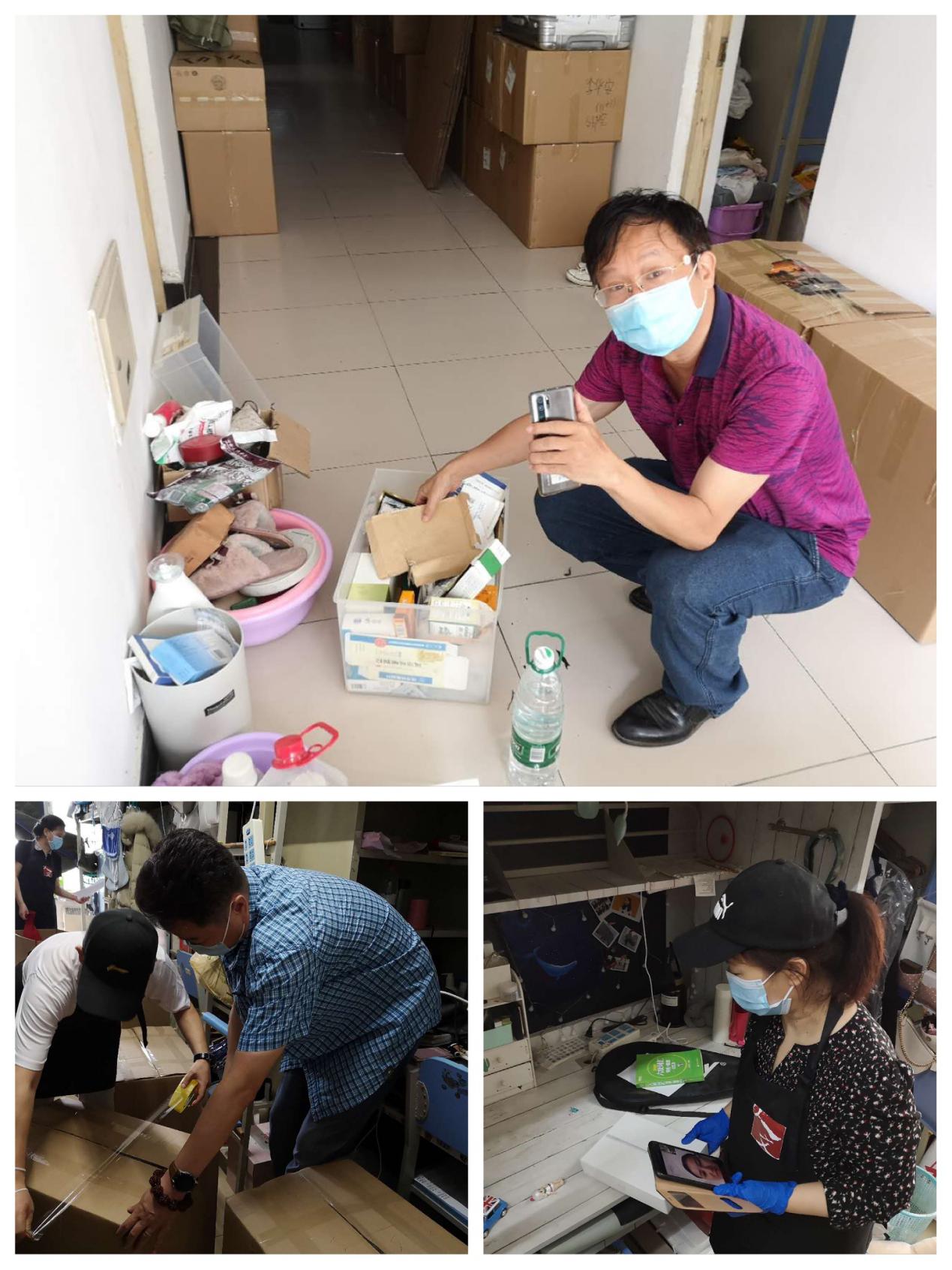 右手有伤的陈玲老师、脚部受伤肿胀的庞涛老师一直“轻伤不下火线”,坚持两天为学生打包,庞涛老师幽默地说“为学生做点事儿很开心。打了一天包,活血化瘀了!”陈玲老师说:“能见证这段历史我感到骄傲!”