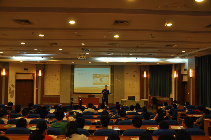 随后,由路景涛带来了主题为《打败80后你就是世界的主人》的专题讲座。在讲座里,他谈到如今移动互联网飞速发展,中国正处于一个巨大的变革之中,在这变革之中蕴含着无数的机遇。同学们要紧跟时代潮流,借助网络平台的超强辐射力,将创业的理念和模式传递给消费者。他还指出大多数成功者的成功都来源于爱好,现在的青年应该尽可能的去做自己喜欢的事情,这是走向成功的第一步。