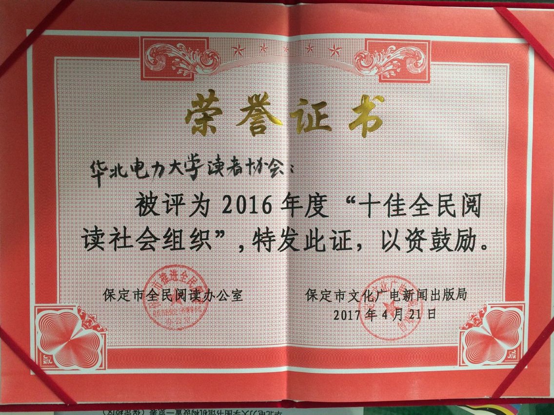 图书馆读者协会获保定市“十佳全民阅读社会组织”