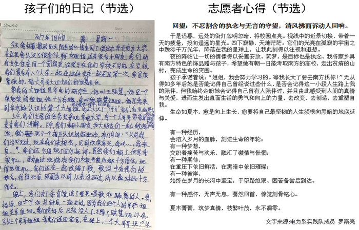 七天的夏令营,孩子们开启了太多的人生第一次。第一次走进大学校园,第一次住集体宿舍,第一次制作航模飞机,第一次认识到物理课程可以这么有趣,第一次见到模拟法庭,第一次接触互联网,第一次绘制一面文化墙,第一次到广播台录音,第一次知道大学里也有这么多从农村来的孩子同样这么优秀,第一次从大哥哥、大姐姐口中了解到未来有无数种可能……。这么多的初体验对于孩子们来说是那么新奇、那么渴望、那么向往,也在他们的心中埋下了一颗颗“梦想的种子”。志愿者们还别出心裁设计了大学录取通知书的背景版,给每个孩子拍照留念,帮他们圆美丽的“大学梦”,激励孩子们奋发学习,考上大学。