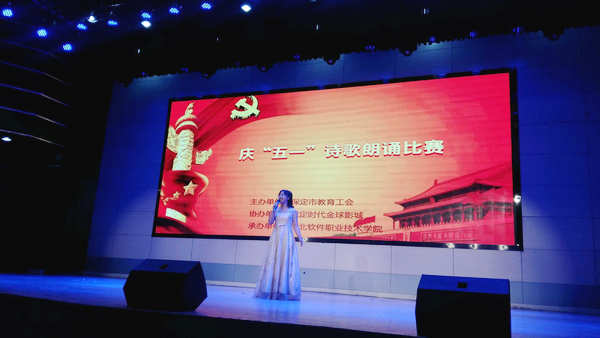 本网保定讯:4月24日,由保定市教育工会举办的庆“五一”诗歌朗诵比赛在河北软件职业技术学院笃学楼一楼报告厅举行,我校机械系教师邓小姝参加了比赛。