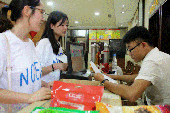 20日,队员们走访周边宾馆酒店,向酒店前台发放商务接待英语口语的教程和资料,并耐心教授。对于零英语基础的服务人员,队员们更是采用了中文谐音的方法教授,效果明显。与此同时,更向各位前台服务者就旅游发展大会进行宣传,希望能够通过此行动提高周边宾馆经营者的服务意识,真正从身边一点一滴做起,为旅游发展大会贡献力量。