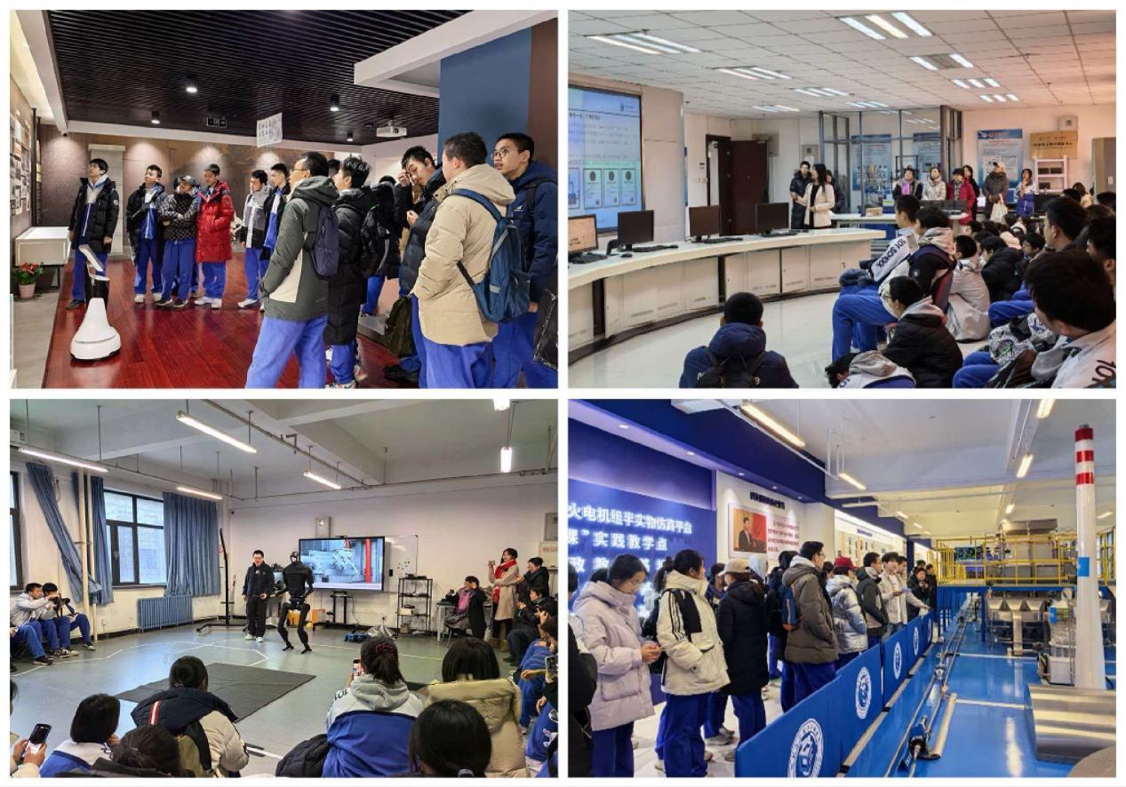 参观团先后前往学校校史馆、学院智能发电实验室、机器人实验室以及1000MW超超临界火电机组半实物仿真平台“大思政课”实践教学点。从追溯办学足迹、感悟服务国家能源电力事业的初心开始,学生们观摩了智能发电、机器人应用等场域,了解了新能源电力系统的发展动态。在1000MW超超临界火电机组半实物仿真平台“大思政课”实践教学点,引导学子们在感悟科技创新成果的同时,深刻领会其中蕴含的能源报国情怀与科学家精神。